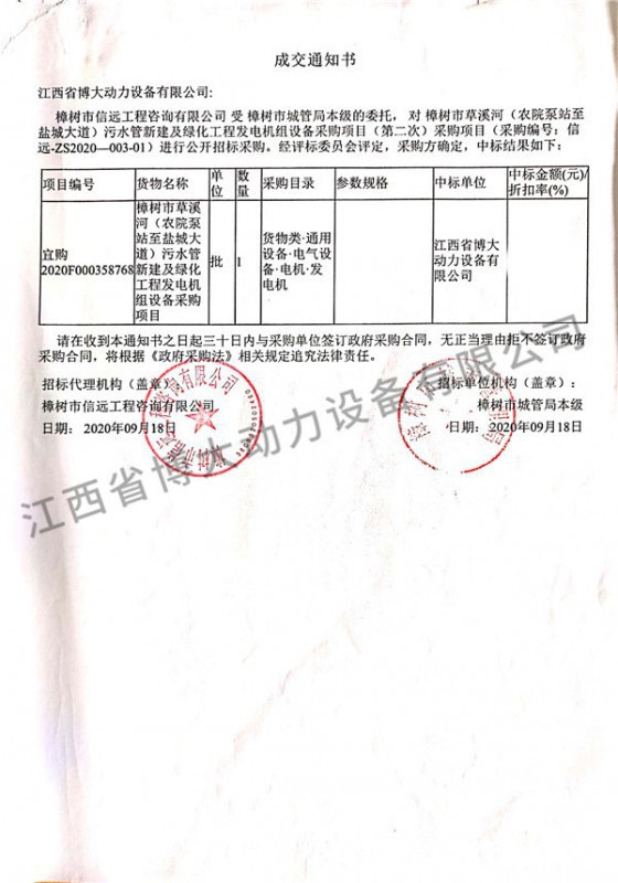 樟樹市城管局項目中標